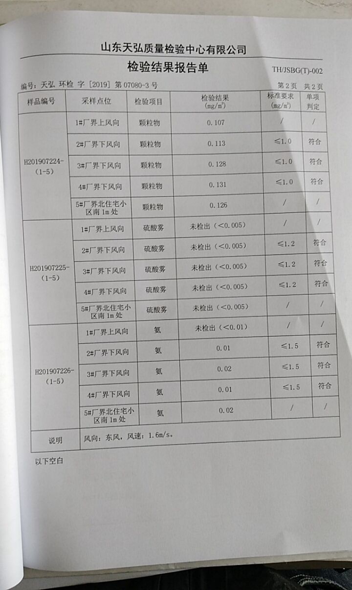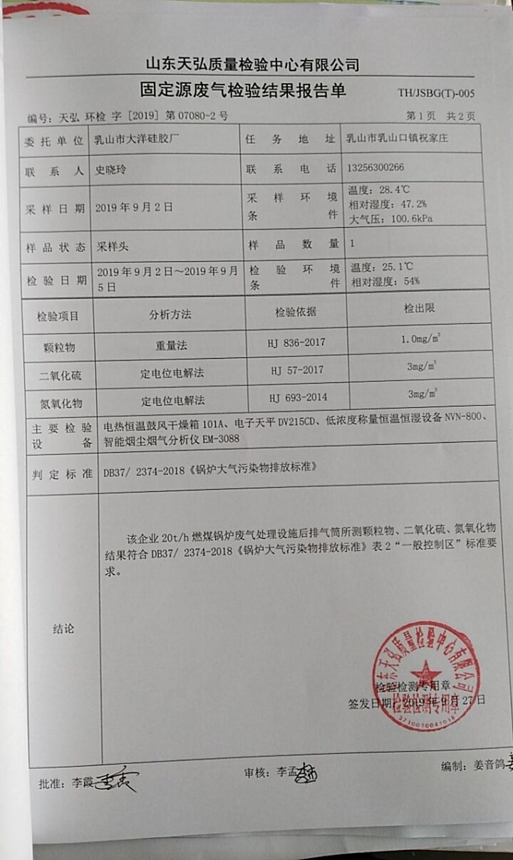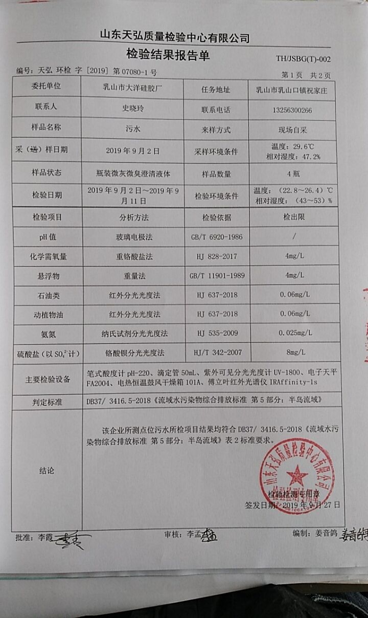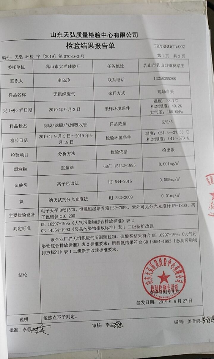 乳山市大洋硅膠廠委拖山東天弘質(zhì)量檢驗(yàn)中心第三季度環(huán)境檢驗(yàn)報(bào)告如下: