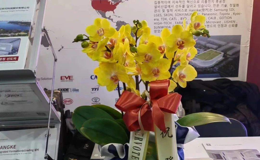 另外杭可科技的合作伙伴三菱企業(yè)還特意送來(lái)了展臺(tái)的鮮花賀禮。