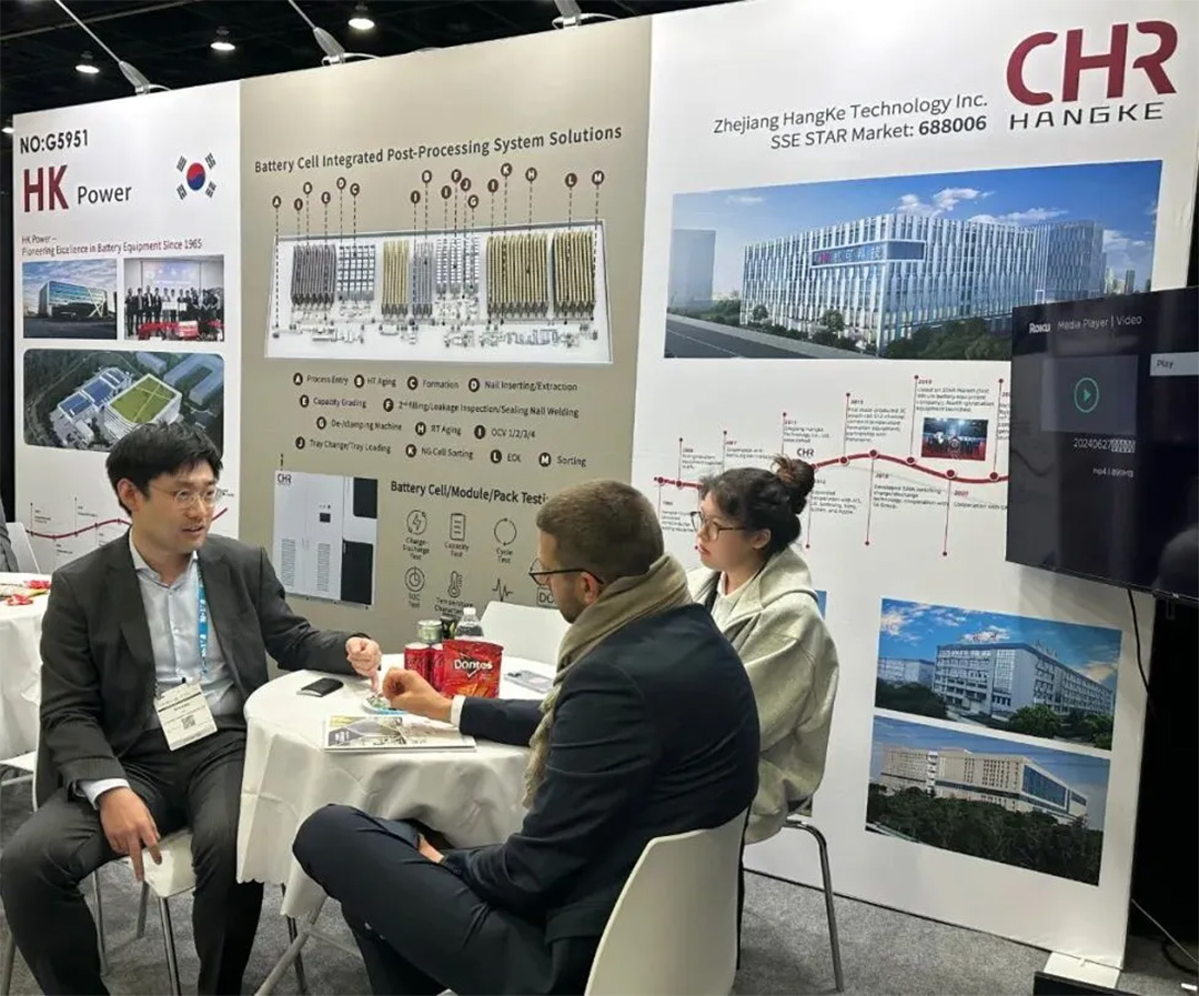 Detroit, the heart of the U.S. automotive industry, gathered the world’s leading players across the lithium battery value chain at this grand event. Hangke Technology’s exhibition spotlighted its integrated post-processing system solutions and battery cell/module/pack testing systems, covering the full range of processes such as Formation, Capacity Grading, and Testing — perfectly tailored for large-scale production of both power batteries and energy storage batteries.