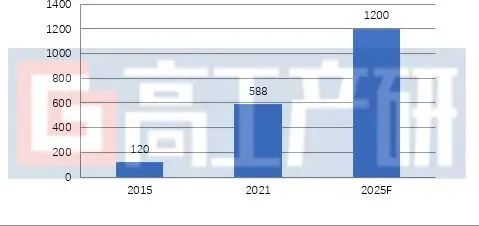 受鋰電池產(chǎn)業(yè)近兩年的擴(kuò)產(chǎn)帶動,我國鋰電設(shè)備需求也在快速增長。據(jù)高工產(chǎn)研鋰電研究所(GGII)數(shù)據(jù)顯示,2021年中國鋰電生產(chǎn)設(shè)備市場規(guī)模為588億元,同比增長104.88%,較2015年的120億元增長了3.9倍。GGII預(yù)計(jì)未來幾年鋰電設(shè)備市場規(guī)模仍將高速增長,到2025年,中國鋰電設(shè)備市場規(guī)模將達(dá)1200億元,2021-2025年年均復(fù)合增速19.52%。