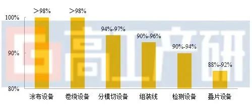 2021年中國主要鋰電設(shè)備國產(chǎn)化率(%)